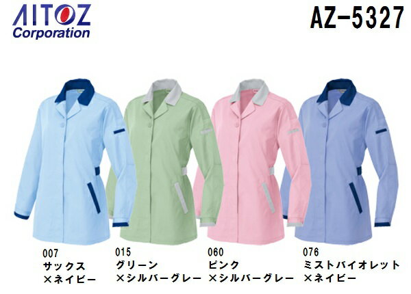 ◎制電素材使用 スペック メーカー アイトス (AITOZ) 品番/シリーズ AZ-5327/ムービンカット シーズン 春夏物 ※このシリーズの秋冬用商品はコチラ 商品名 長袖サマースモック 素材 ・素材/ライトツイル ポリエステル65%・綿35% ・ボタン/糸付ボタン 特徴・ポイント 帯電防止 仕様 袖口/カフス(糸付ボタン2個付)、ペン差し付(左袖) カラー 007:サックス×ネイビー 015:グリーン×シルバーグレー 060:ピンク×シルバーグレー 076:ミストバイオレット×ネイビー サイズ S〜5L ※3L以降は割り高になります。
