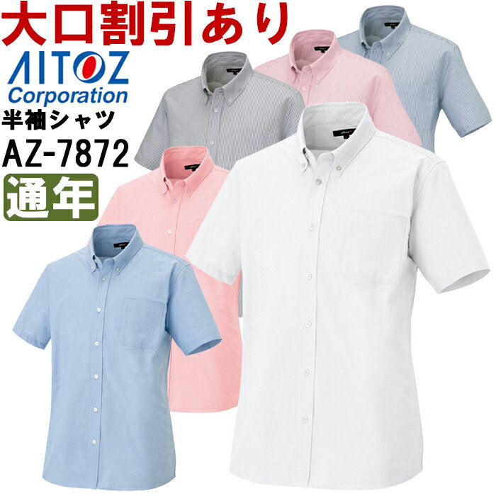 ユニフォーム 半袖シャツメンズ半袖オックスボタンダウンシャツ AZ-7872 (3L)オックスフォードシャツアイトス (AITOZ) お取寄せ